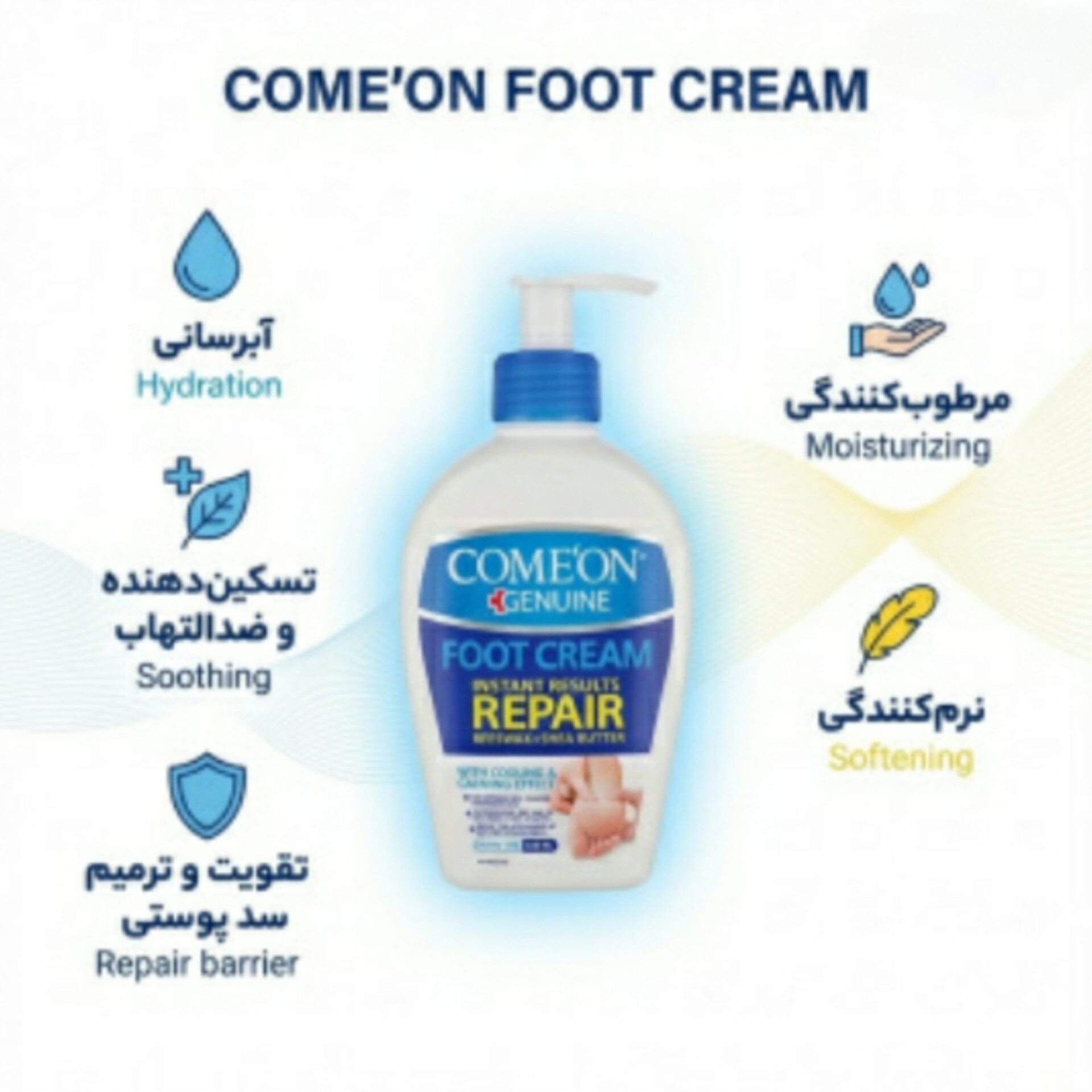 ویژگی های محصول: کرم ترک پا کامان مرطوب کننده و نرم کننده پوست پا، آرنج و زانو دارای بافت سبک و زود جذب بدون ایجاد حس سنگینی و چربی روی پوست کرم ترک پا کامان موثر در رفع پینه و اگزمای پوست پا مرطوب کننده قوی پوست به علت داشتن شی باتر کرم مرطوب کننده پا کامان مناسب برای انواع پوست حتی پوست خشک و حساس قابل استفاده برای پوست کف پا، آرنج و زانو کرم ترک پا کامان ترمیم کننده و لایه بردار ملایم پوست